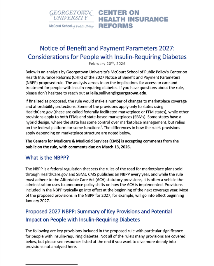 Notice of Benefit and Payment Parameters 2027: Considerations for People with Insulin-Requiring Diabetes Amy Killelea | 2026-02-20Please click here to view the publication.